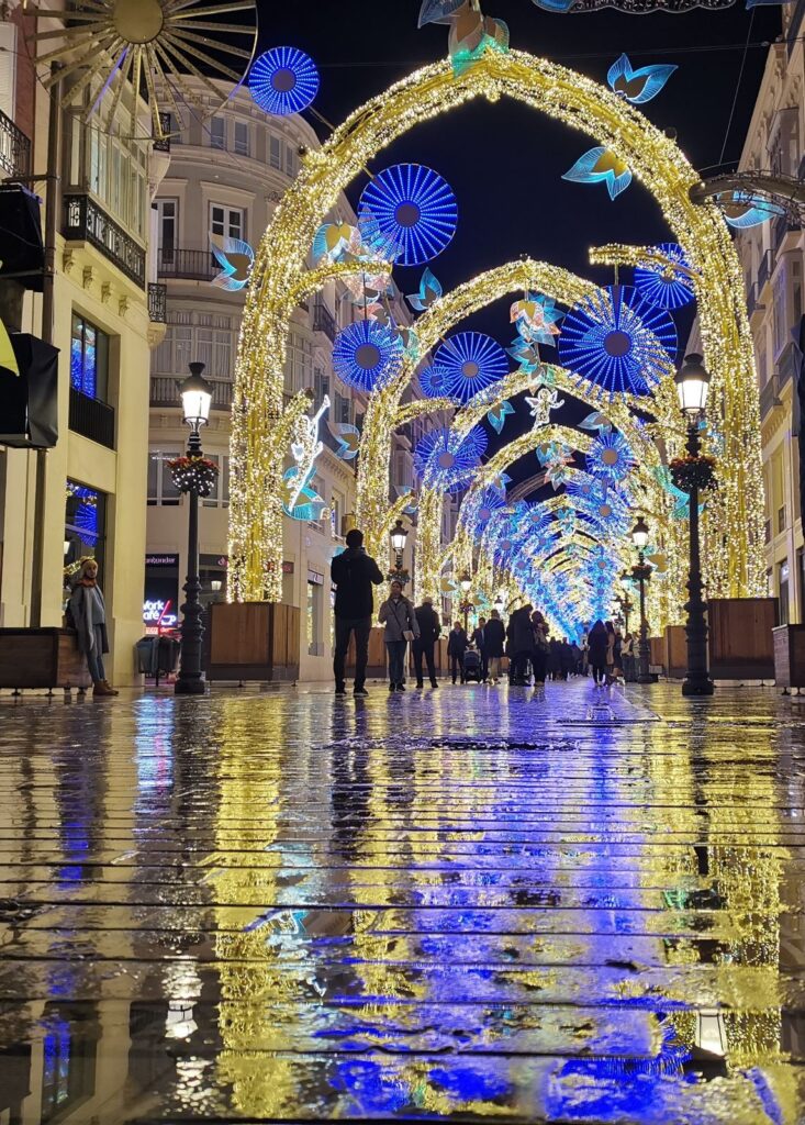 Links ein Bild der Weihnachtsbeleuchtung in Málaga. Diese wird als eine der schönsten in Spanien bezeichnet und kostete mehrere Millionen. Sie ist wirklich schön (vor allem in echt).